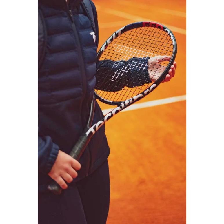 The TFIT tennis racket range is the ideal choice for regular players and occasional competitors. It has been designed to provide easy performance with maximum power, comfort and forgiveness. In this range, the TFIT 275 tennis racket provides the necessary power and forgiveness, particularly for occasional players looking for an “easy-to-play” product. Large 680 cm² head and 16x19 string pattern for greater power and, especially, more forgiveness on off-centre shots. The aesthetic design is stylish, in full matt black with blue and red accents in the Tecnifibre colours. Pre-strung as standard, the racket is ready to play straight away.
