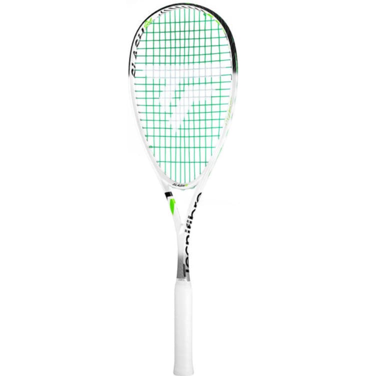 The fundamentals of the frame construction remain in place, with YOKE POWER TECHNOLOGY: a wider head elongated to 485 cm² to increase string elasticity, with a narrower open core with outer reinforcements for more strength and a larger 390 mm² oversize shaft for maximum power. Pre-strung in 305 green, the benchmark for the squash market, and Tecnifibre’s most elastic string for the ultimate compromise between power and comfort.