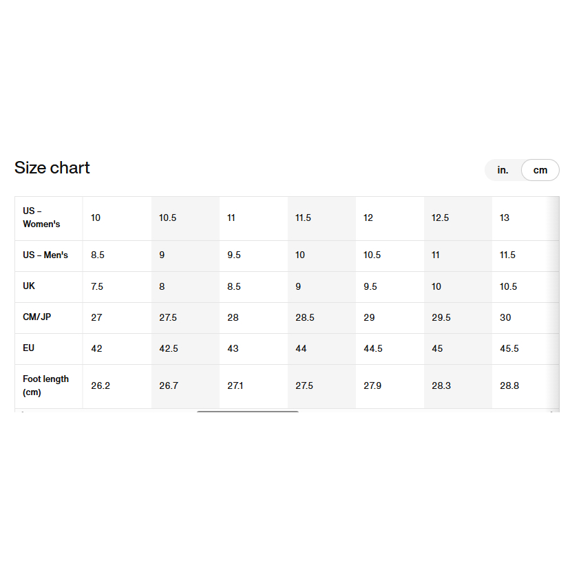 Shoe size is in US