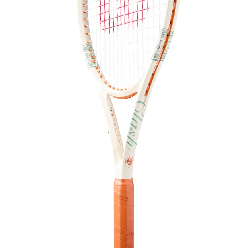 Inspired by Parisian elegance, Wilson's Clash 100 V3 Roland-Garros 2026 tennis racket takes style cues from the intricate ironwork of French architecture and the splendor of the stadium grounds. This performance racket is designed for a mix of power, consistency and control that lets players of all levels play their best tennis. Its blend of flexibility, stability and comfort deliver a feeling unlike any other, and its enhanced forgiveness makes everywhere feel like the sweet spot. Agiplast plant-based bumper, grommets and end cap incorporate sustainable components for a reduced environmental footprint, while the new Click & Go bumper system makes replacement quick and easy.